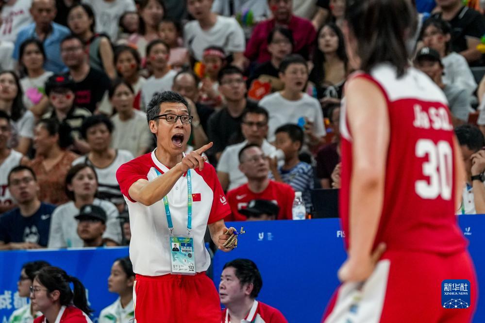 8月5日,中国队主教练李笋南(中)在为球员布置战术。新华社记者 胡超 摄
