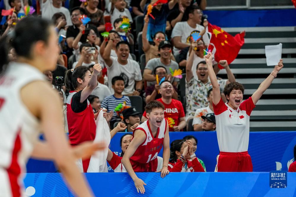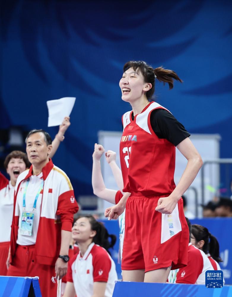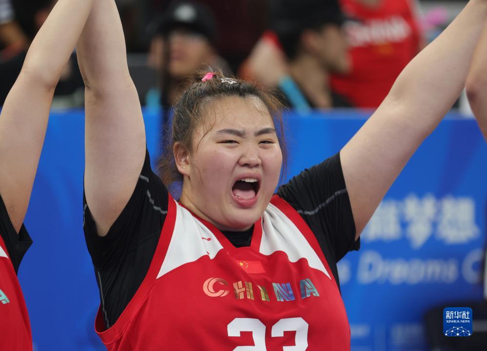 8月5日,中国队球员庆祝得分。新华社记者 杨青 摄