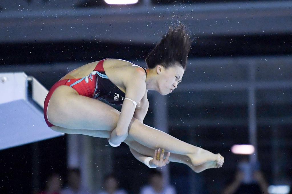 8月5日,陈芋汐在比赛中。新华社记者任鹏飞摄