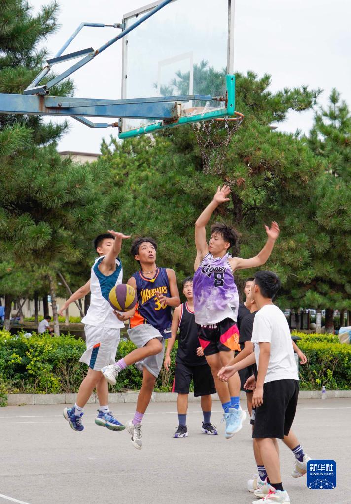 8月6日,市民在河北省遵化市人民公园篮球场打篮球。新华社发(刘满仓摄)