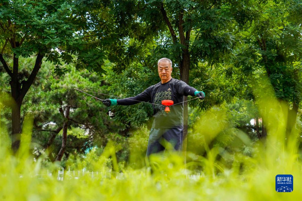 8月6日,市民在河北省遵化市人民公园练习抖空竹。新华社发(刘满仓摄)