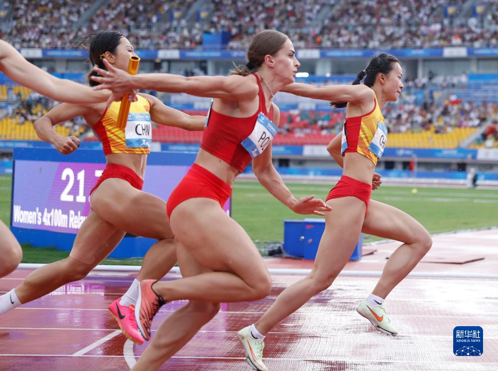 当日,在成都举行的第31届世界大学生夏季运动会田径项目女子4x100米接力决赛中,中国队以43秒70的成绩获得冠军。