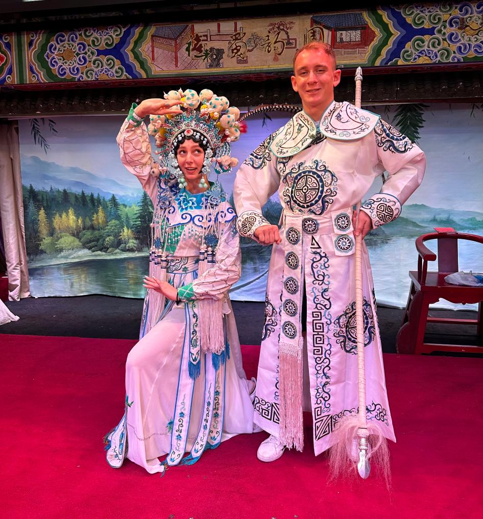 运动员们随后步入一家川剧剧院,舞台上“生旦净末丑”依次登台,好不热闹。瓦西尔丘克说,虽然听不懂戏曲中在唱什么,但仍能感受到戏剧所表达的情感。