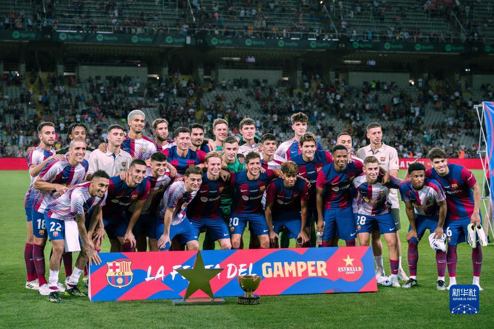 当日,在2023甘伯杯足球赛决赛中,西甲巴塞罗那队主场以4比2战胜英超托特纳姆热刺队,获得冠军。