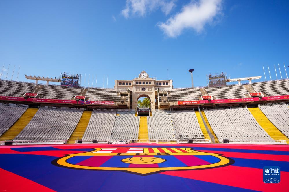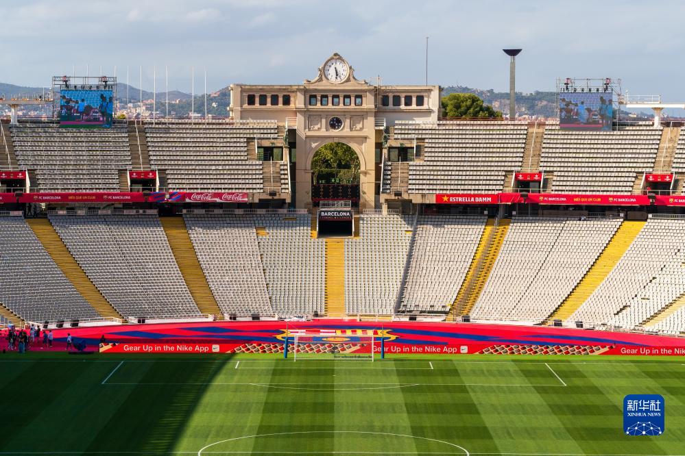 这是8月8日拍摄的孔帕尼斯奥林匹克体育场。因诺坎普球场改建,孔帕尼斯奥林匹克体育场将作为新赛季巴塞罗那队主场。新华社发(胡安·戈萨摄)