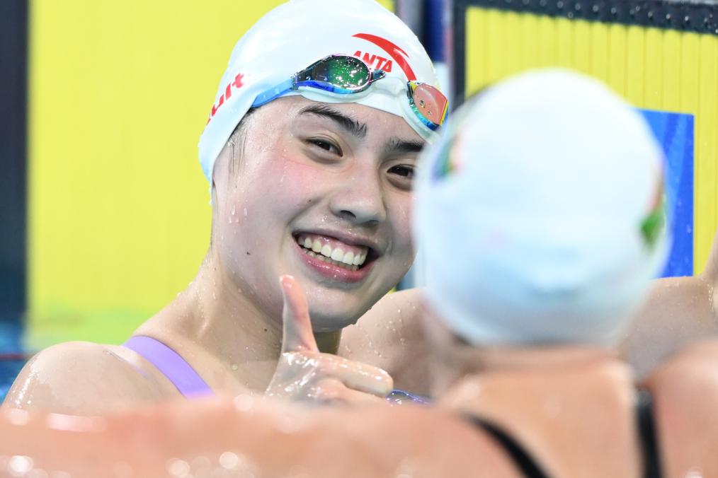 “我还交到了一个南非的朋友,我俩一起比了50米蝶泳、100米蝶泳和100米自由泳,基本我所有比的项目她都会在,而且总是在我相邻的泳道,我们坐下的时候也会聊天。她夸我性格好、英语好,说她非常想去看大熊猫,我推荐她去看‘花花’、吃火锅,聊了很多。”