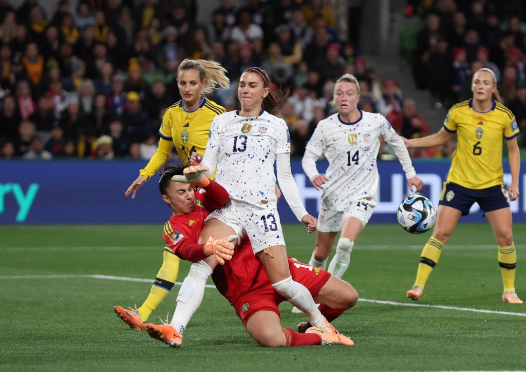 面对美国队的疯狂进攻,瑞典队门将穆绍维奇显得游刃有余。常规时间中,她全场完成了11次扑救,其中9次扑出美国队禁区内的射门,将比赛拖入点球大战。最终,卫冕冠军点球4:5不敌瑞典队,惨遭淘汰。这是这支“世界第一”强队三届世界杯以来经历的首场败局。此前两届世界杯的14场比赛中,她们13胜1平保持不败,连续两次夺冠。