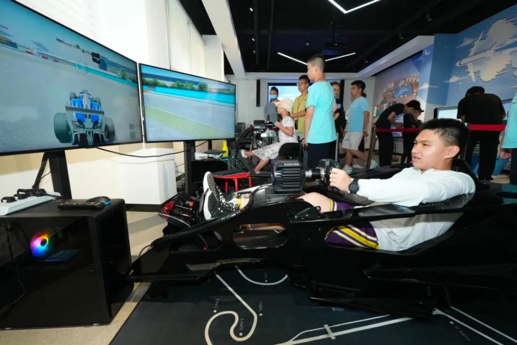 ↑8月12日,上海市民在体验虚拟赛车。