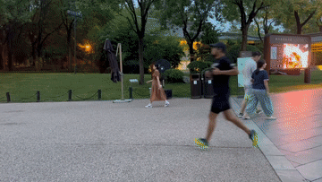 ↑8月8日,市民在浙江省嘉兴市南湖区凌公塘文化主题公园晨跑。