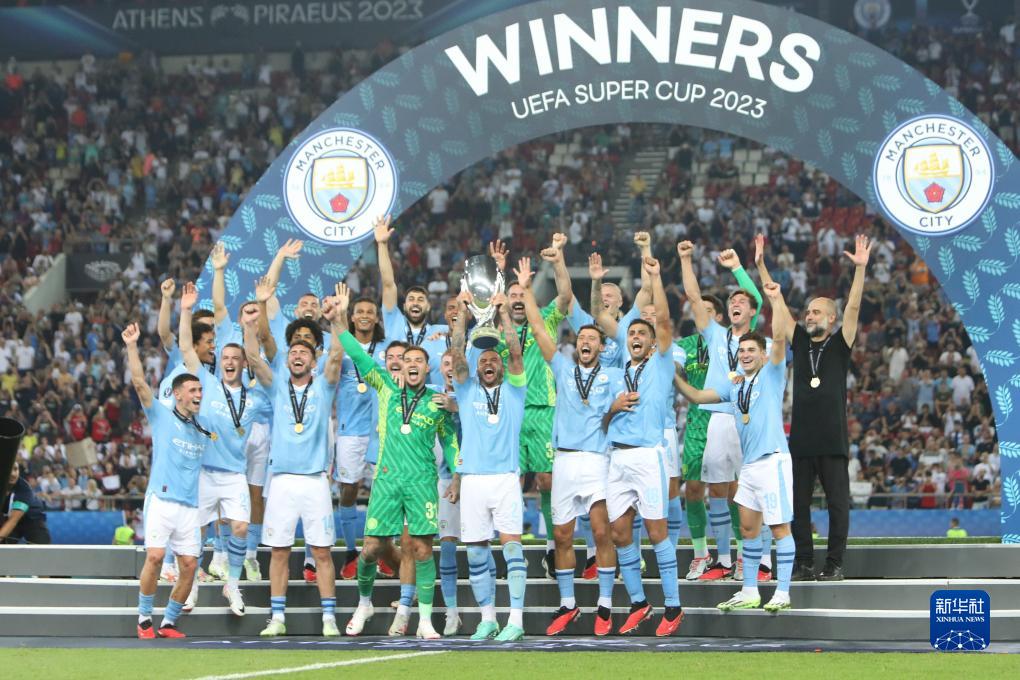 当日,在希腊比雷埃夫斯举行的2023欧洲超级杯比赛中,曼城队与塞维利亚队在常规时间内战成1比1平,经过点球大战,曼城队以总比分6比5战胜塞维利亚队,夺得冠军。