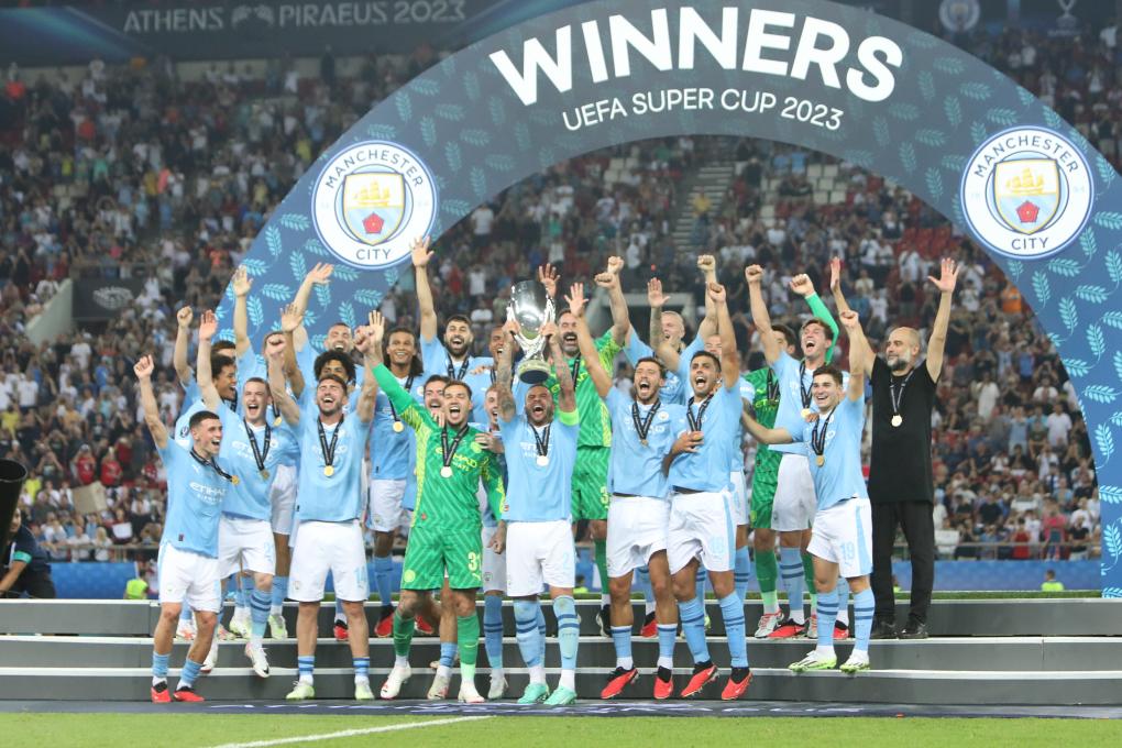 新华社雅典8月16日电(黎梦青)欧洲超级杯足球决赛16日在希腊首都雅典的卡雷斯卡基斯体育场进行,欧冠冠军曼城通过点球大战击败欧联杯冠军塞维利亚,历史上首次获得欧洲超级杯冠军。