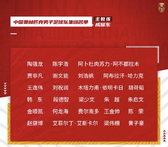 该集训名单由25名运动员组成,成耀东担任主教练。队伍将于8月19日至9月13日在大连集训,并参加2024年卡塔尔U23亚洲杯预选赛暨巴黎奥运会亚洲区预选赛资格赛。