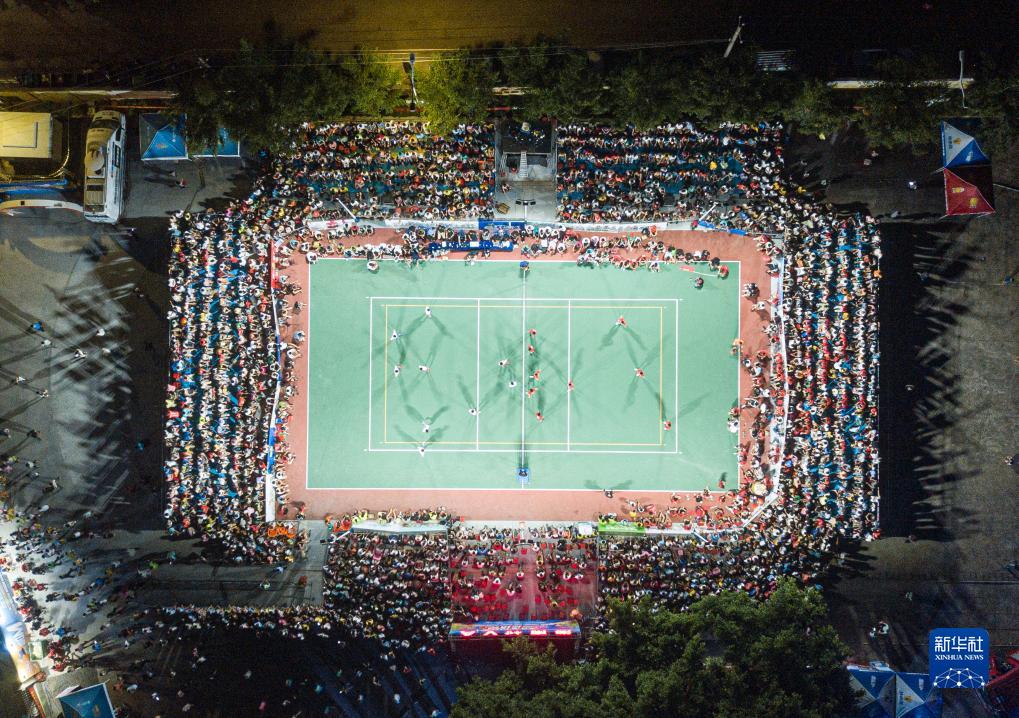 在“村排”决赛中,东郊镇队(右)对阵东阁镇队(8月13日摄)。新华社记者 蒲晓旭 摄