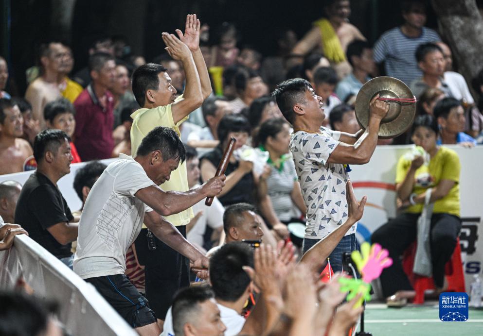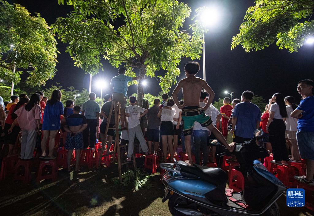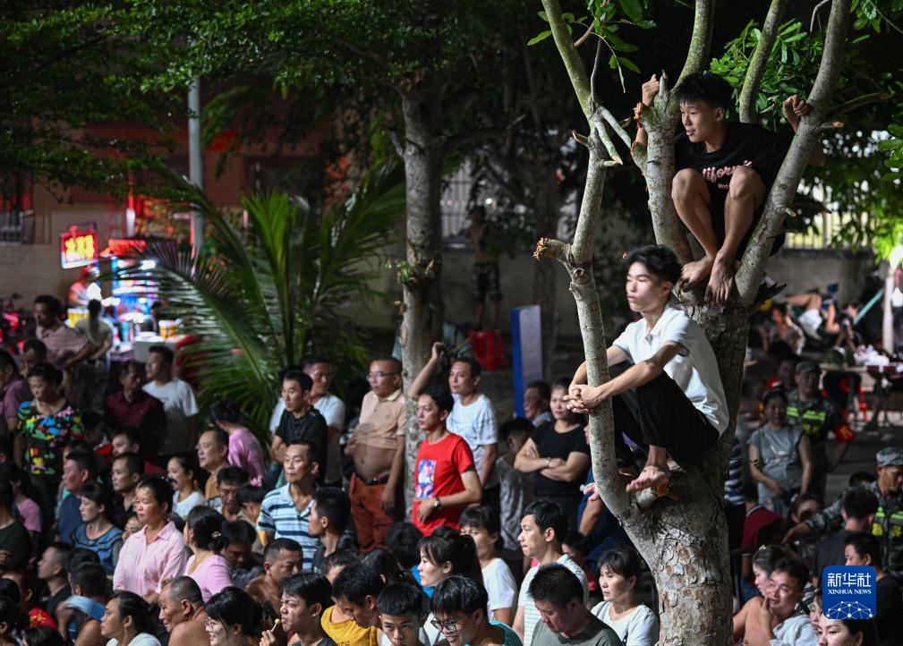 人们在海南省文昌市冯坡镇观看“村排”比赛(7月15日摄)。新华社记者 蒲晓旭 摄