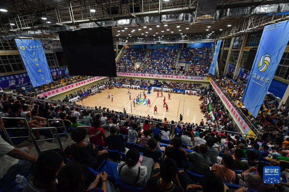 观众在文昌排球馆观看“村排”比赛(7月3日摄)。新华社记者 蒲晓旭 摄