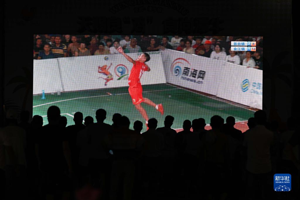 观众在海南省文昌市龙楼镇观看东郊镇队对战公坡镇队的比赛(7月1日摄)。新华社记者 蒲晓旭 摄