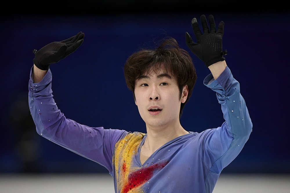 3月25日,中国选手金博洋在2023年世界花样滑冰锦标赛男子单人滑自由滑比赛中。新华社发(帕布罗·莫拉诺摄)