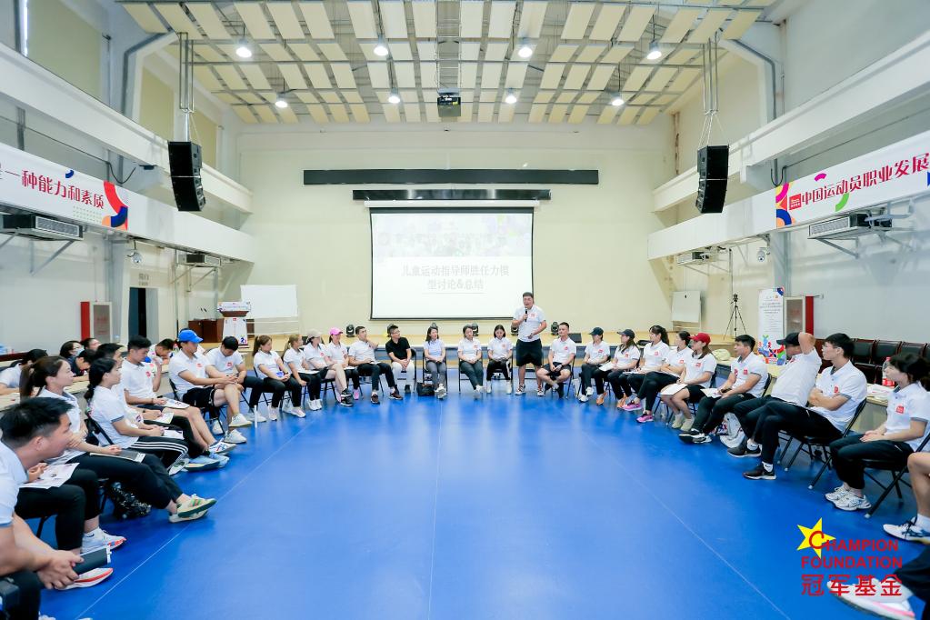 这是冠军基金第九期儿童运动指导师培训班的总结交流会。为期七天的培训班安排了儿童运动指导师相关教学实践课程、体育行业创新创业分享以及体育公益参访等活动。