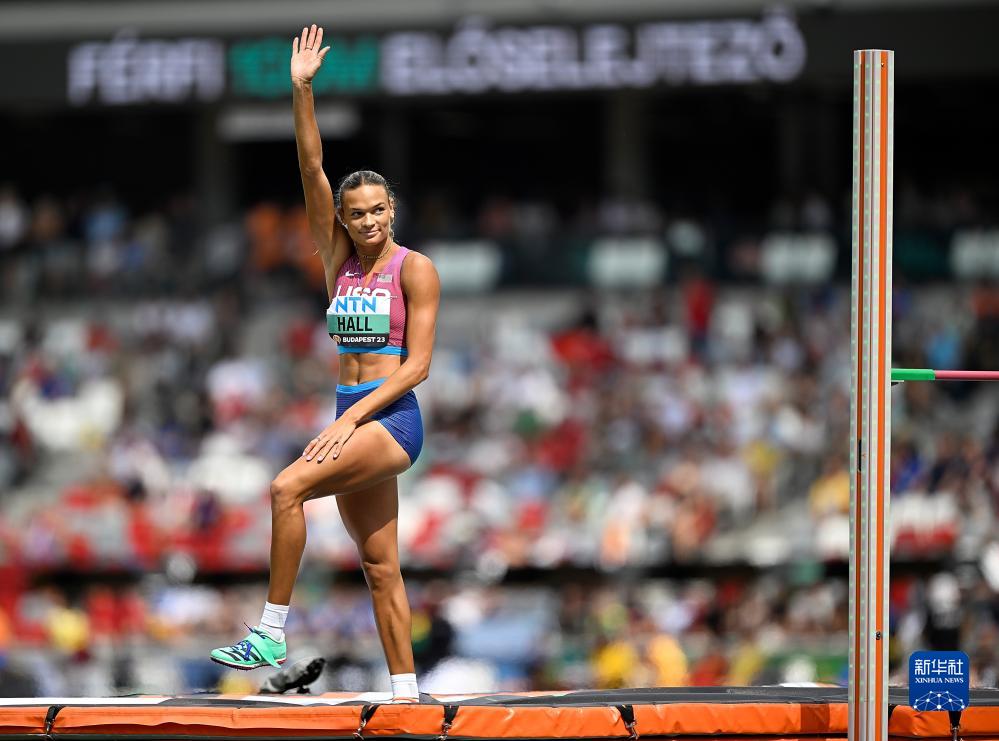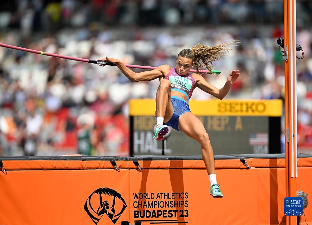 8月19日,美国选手霍尔在跳高比赛中。她获得该项目并列第三名。新华社记者 宋彦桦 摄
