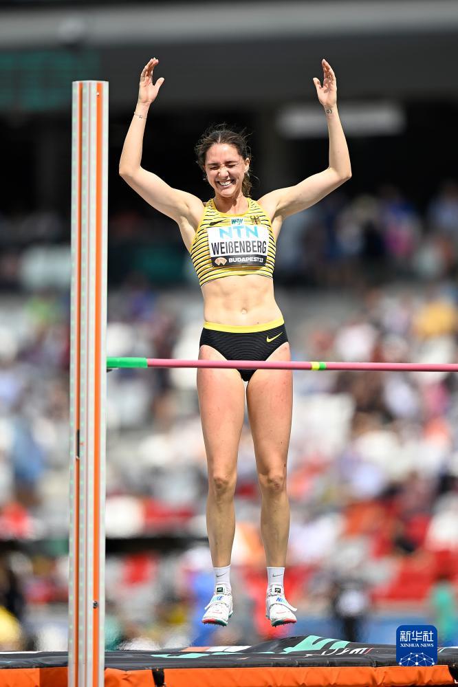 8月19日,德国选手魏森贝格在跳高比赛中。她获得该项目第一名。新华社记者 宋彦桦 摄