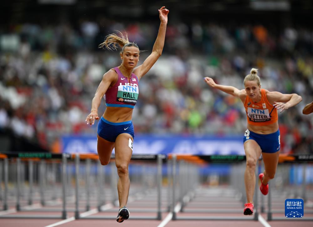8月19日,美国选手霍尔(左)在100米栏比赛中。她获得该项目第二名。新华社记者 宋彦桦 摄