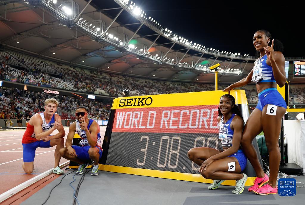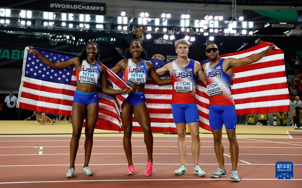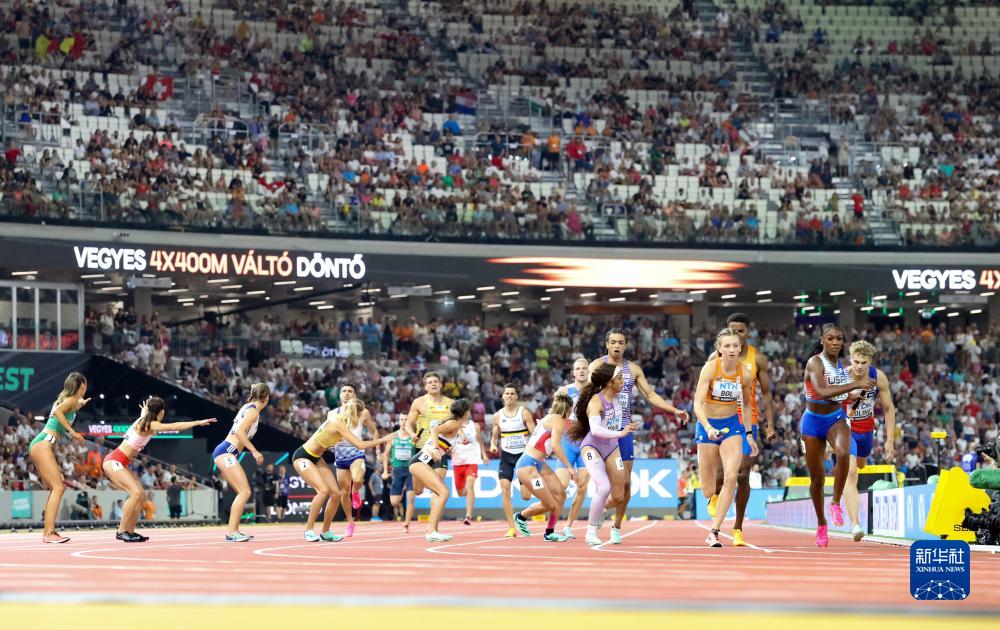当日,2023世界田径锦标赛男女混合4X400米接力决赛在匈牙利布达佩斯举行。