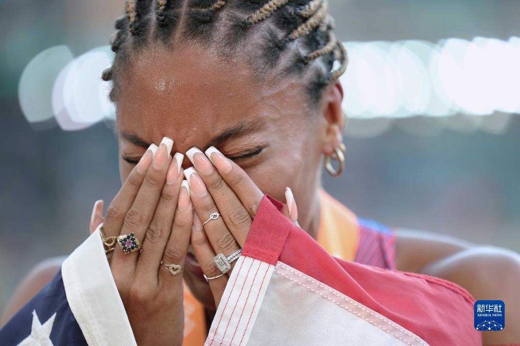 8月20日,美国选手戴维斯-伍德霍尔在比赛后庆祝。新华社记者 李明 摄
