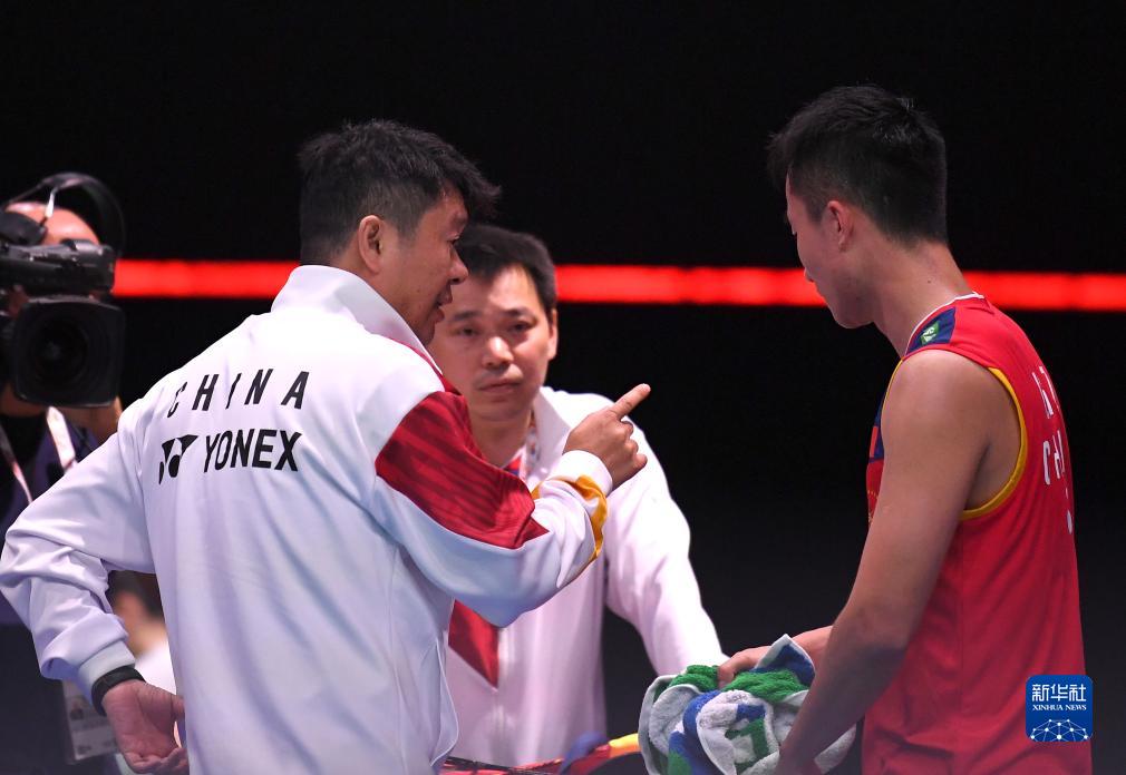 8月22日,陆光祖(右)在比赛间隙接受教练孙俊(左)指导。新华社记者 任鹏飞 摄