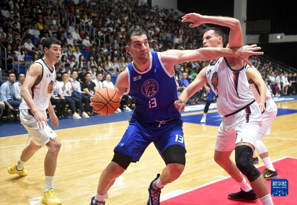 8月23日,香港金牛队球员莫里斯·坎普 (上)在比赛中投篮。新华社记者 卢炳辉 摄