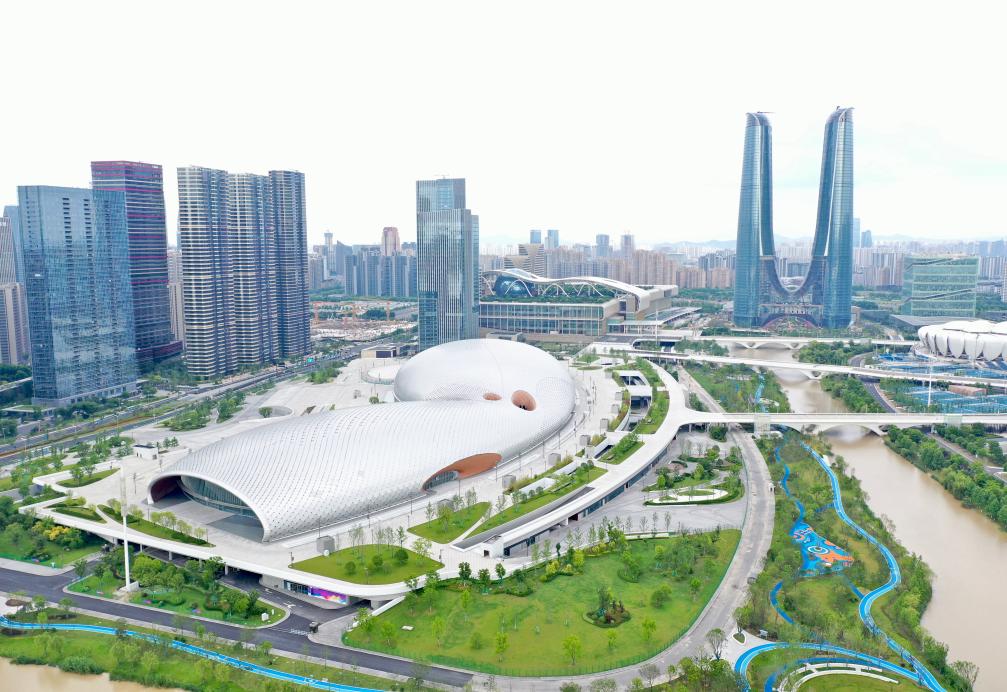 图为杭州奥体中心游泳馆外景。