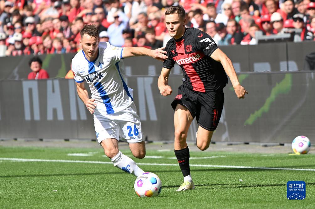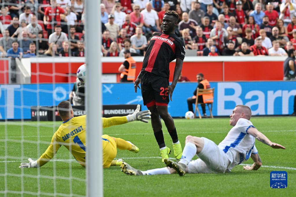 当日,在2023-2024赛季德国足球甲级联赛第3轮比赛中,勒沃库森队主场以5比1战胜达姆施塔特队。