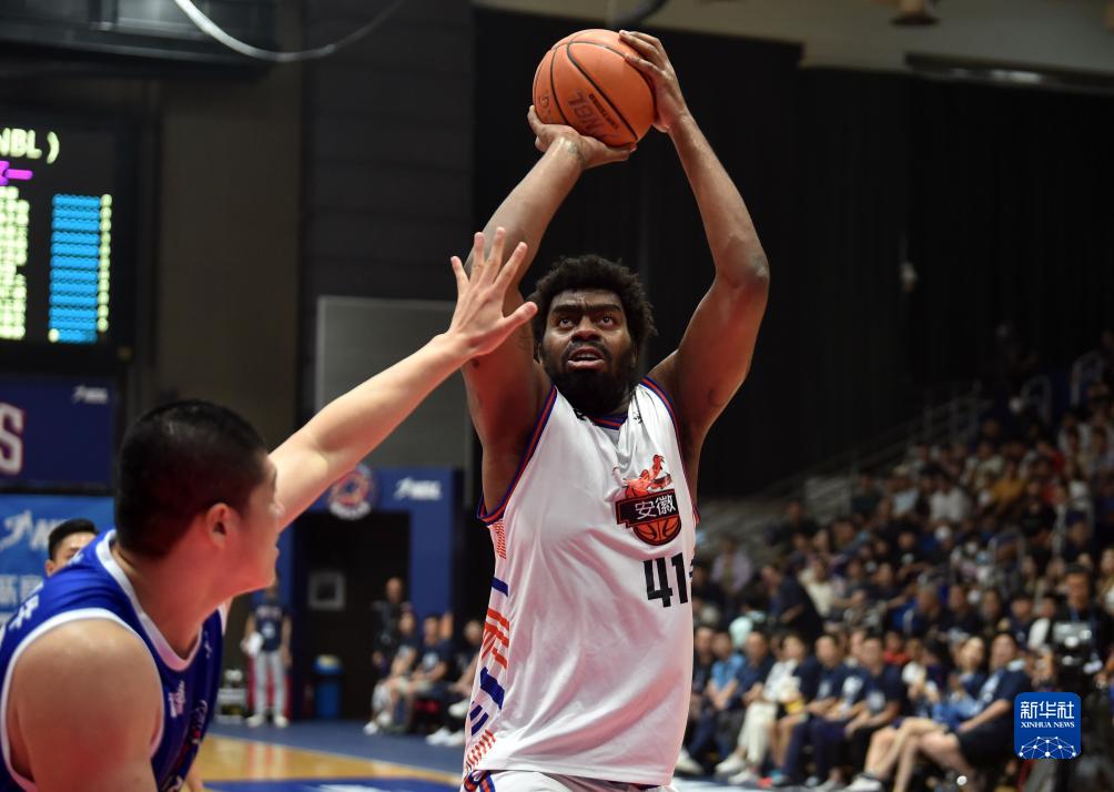9月3日,安徽文一队球员达卡里·约翰逊(右)在比赛中投篮。新华社记者卢炳辉摄