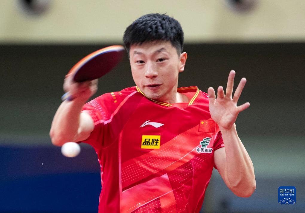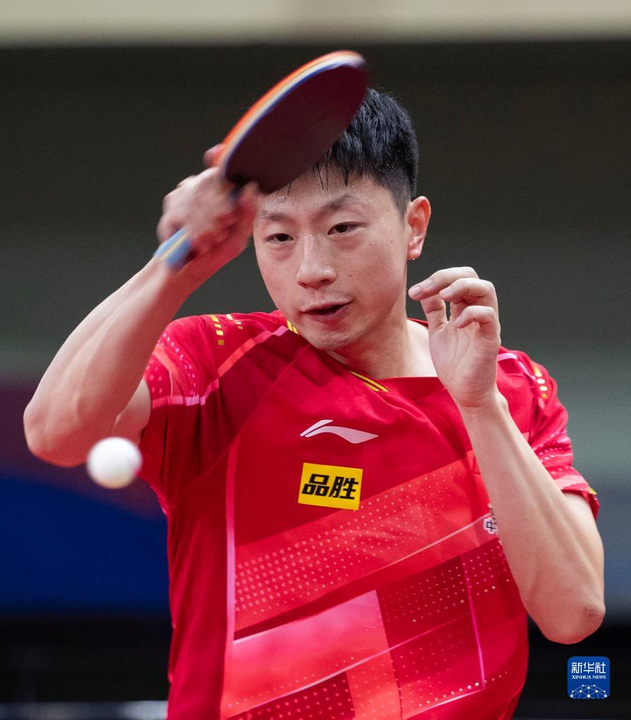 9月3日,中国队选手马龙在比赛中回球。他以3比0战胜卡塔尔队选手法赫德·阿尔穆罕尼。新华社发(李相浩摄)
