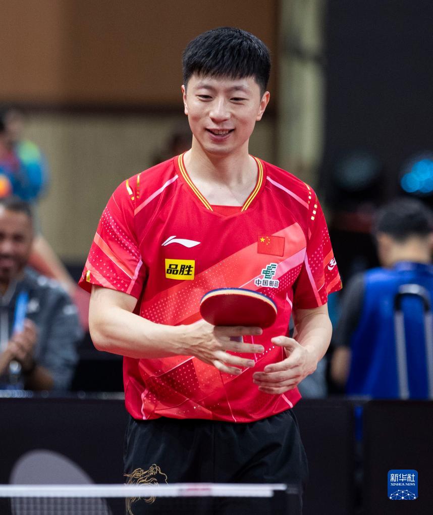 9月3日,中国队选手马龙在比赛中。他以3比0战胜卡塔尔队选手法赫德·阿尔穆罕尼。新华社发(李相浩摄)