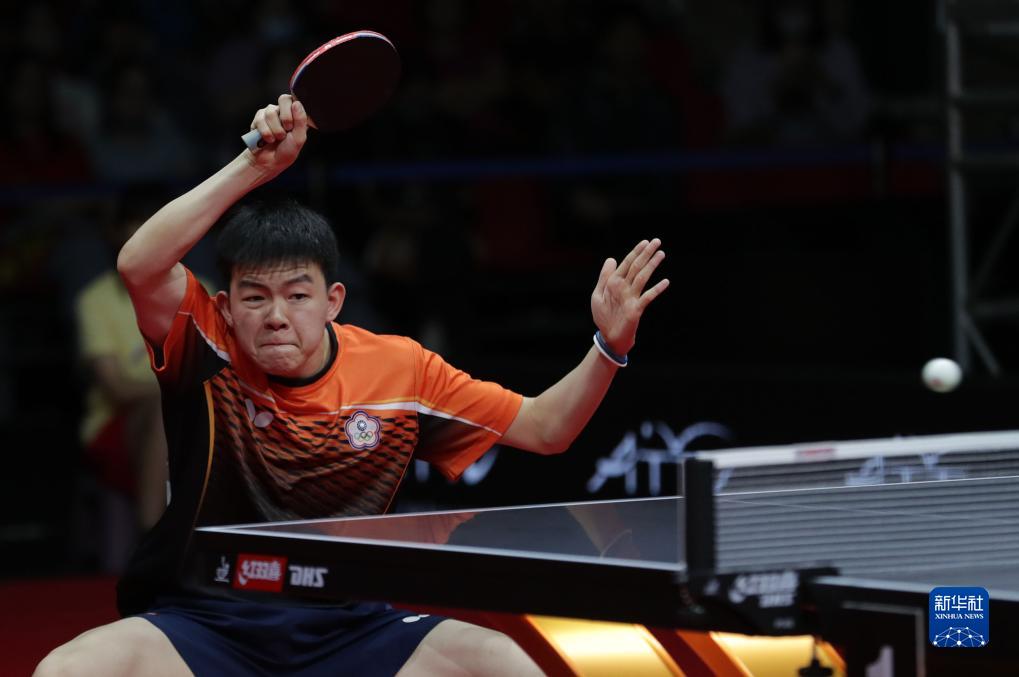 9月6日,中国台北队选手林昀儒在比赛中回球。他以2比3不敌中国队选手樊振东。新华社发(李相浩摄)