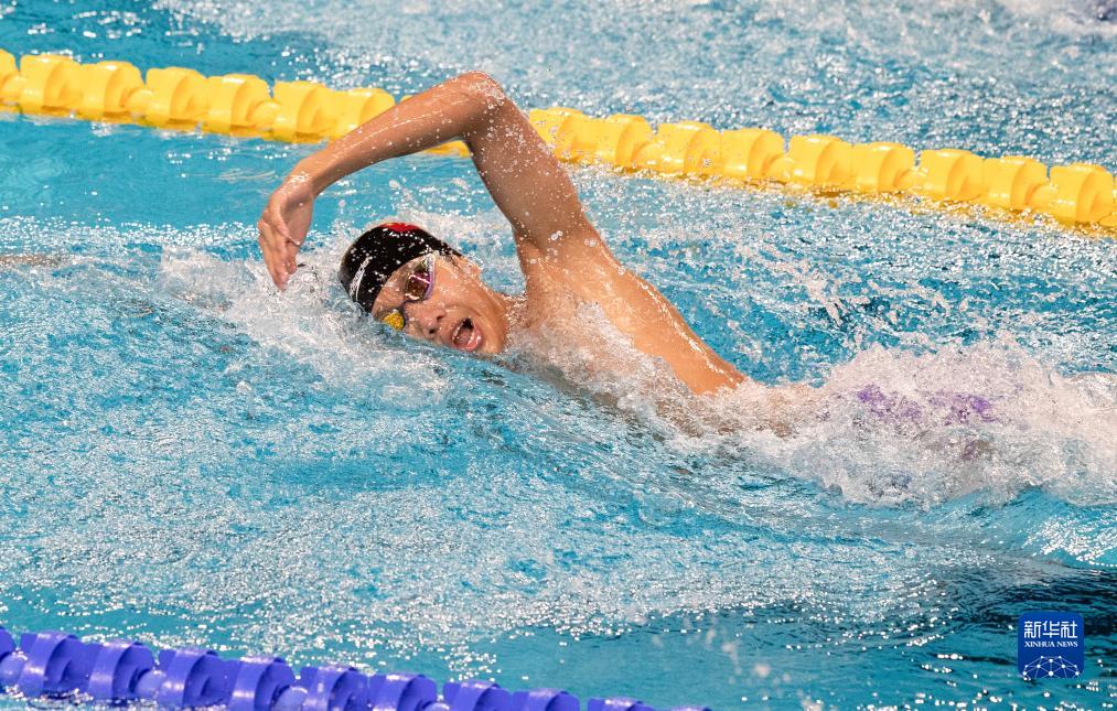 9月6日,中国选手张展硕在男子800米自由泳决赛中。他以7分50秒03的成绩获得季军。新华社记者 陈君清 摄