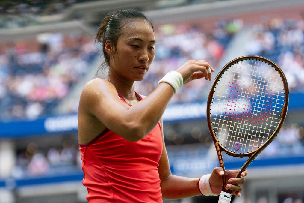 9月6日,在2023美国网球公开赛女子单打四分之一决赛中,中国选手郑钦文以0:2不敌白俄罗斯选手萨巴伦卡,无缘半决赛。新华社记者 刘杰 摄