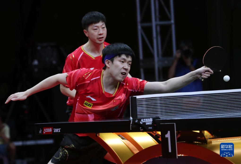 9月9日,马龙(上右)/王楚钦(上左)在比赛中。