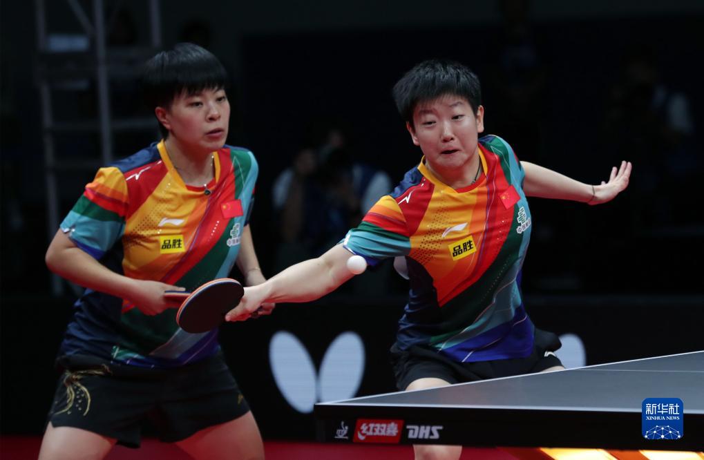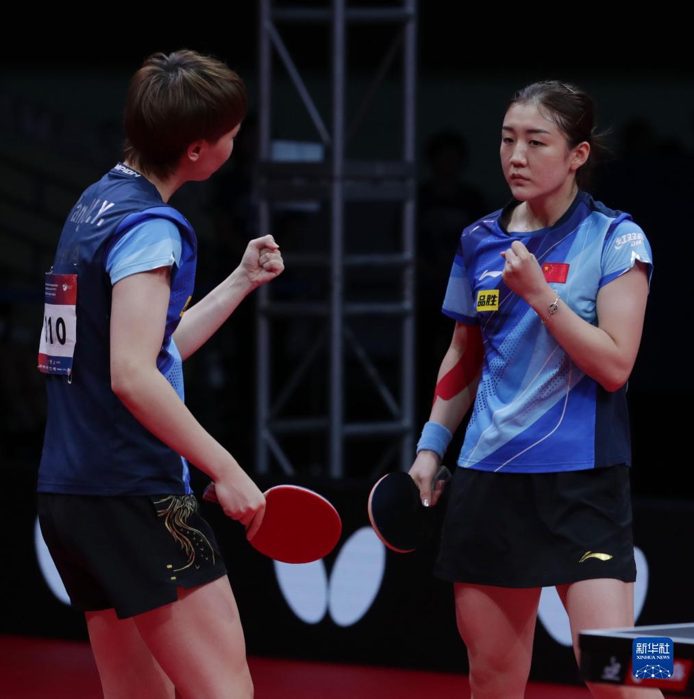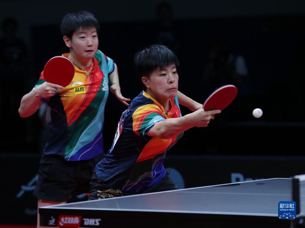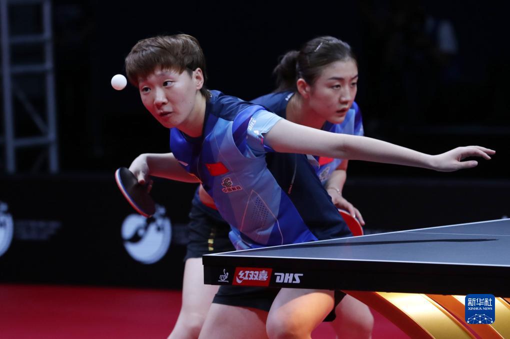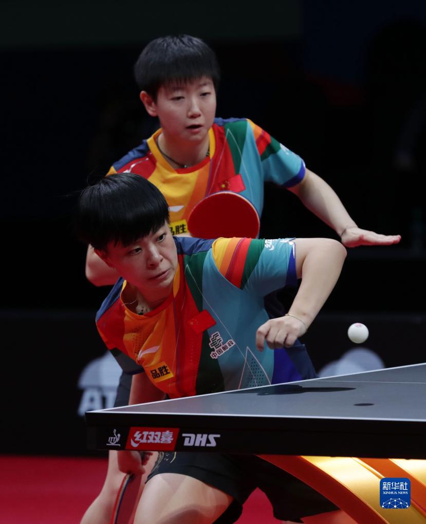 9月10日,王曼昱/陈梦(左)在比赛中。新华社发(李相浩摄)