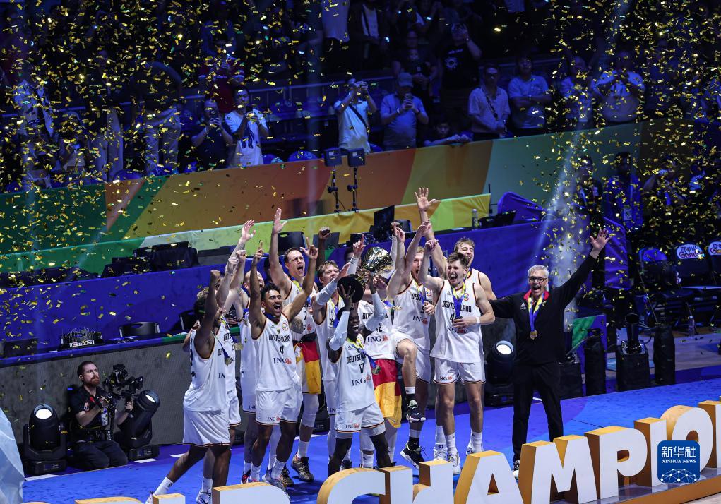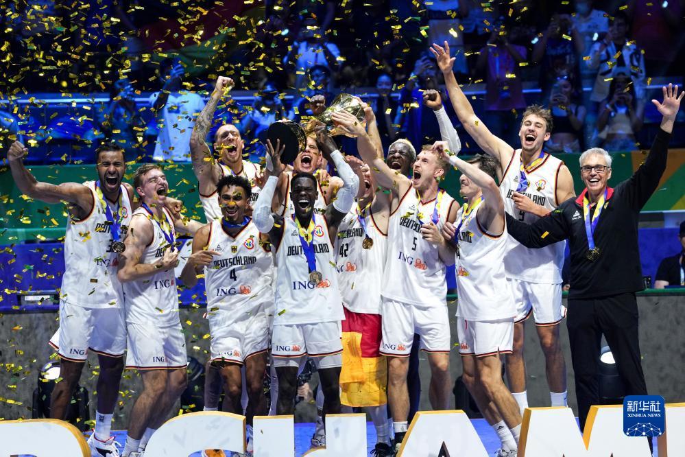 当日,在菲律宾马尼拉举行的2023年篮球世界杯决赛中,德国队以83比77战胜塞尔维亚队,获得冠军。
