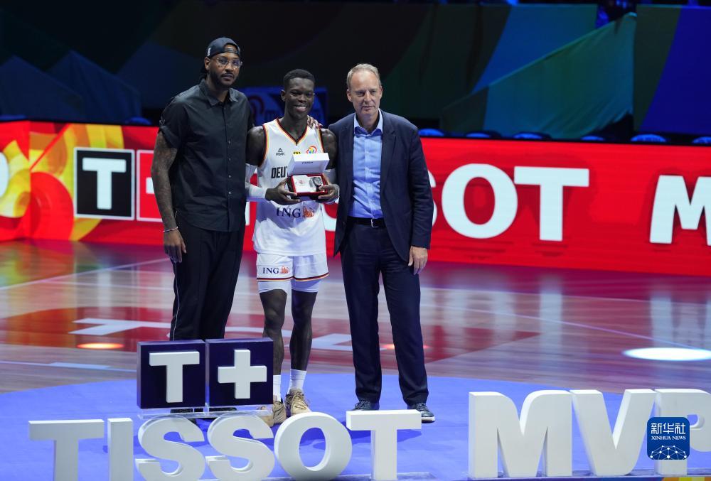 9月10日,德国队球员丹尼斯·施罗德(中)当选最有价值球员。新华社记者 孟永民 摄