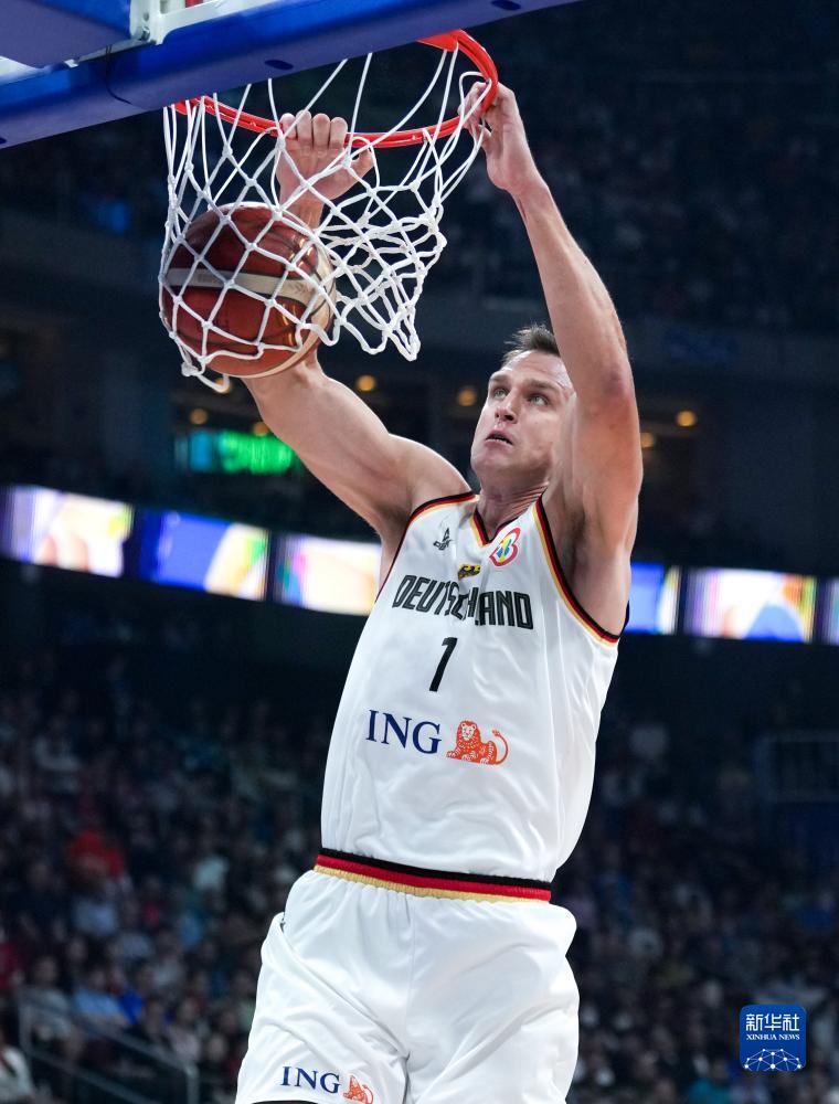 9月10日,德国队球员约翰内斯·福伊特曼在比赛中扣篮。新华社记者 孟永民 摄