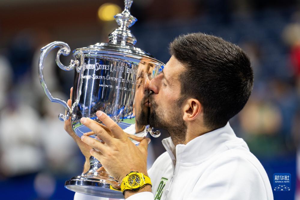 9月10日,焦科维奇在颁奖仪式上亲吻冠军奖杯。新华社记者 刘杰 摄