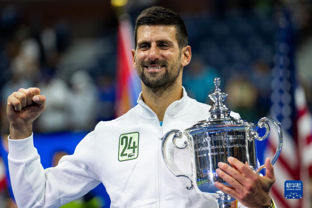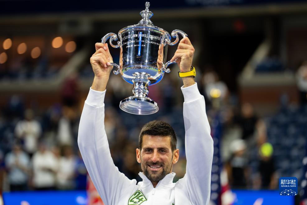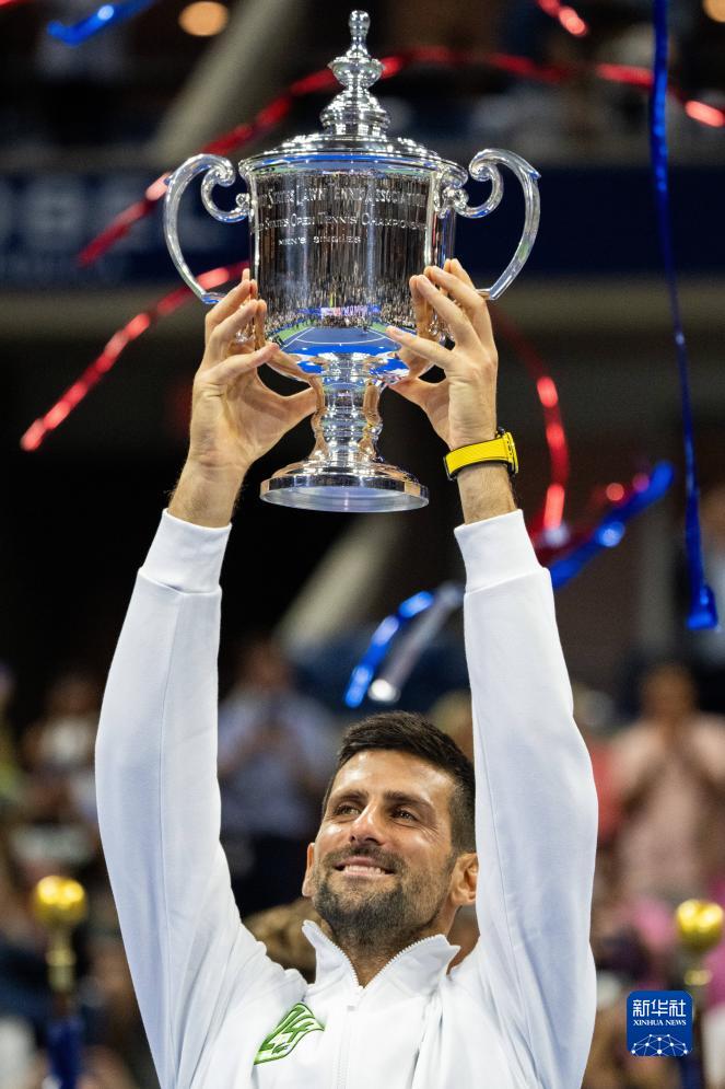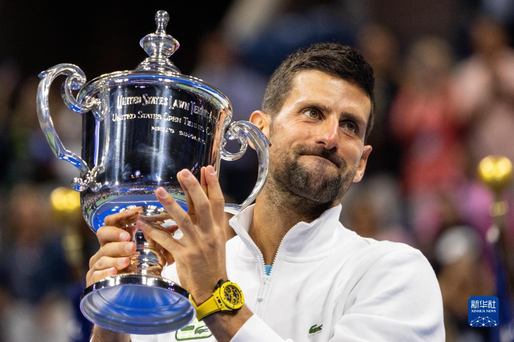 9月10日,焦科维奇在颁奖仪式上手捧冠军奖杯。新华社记者 刘杰 摄