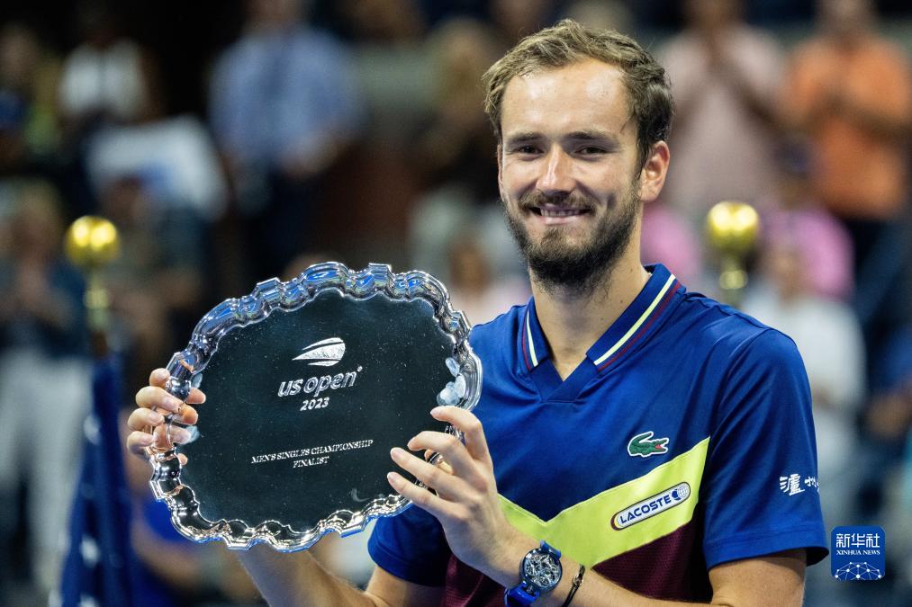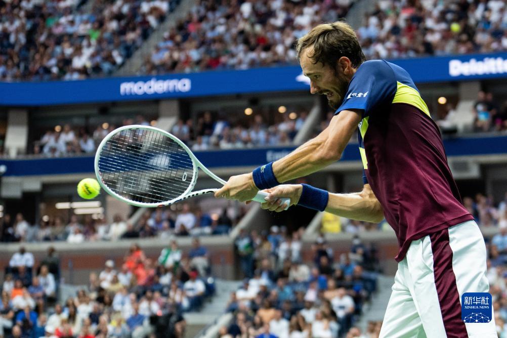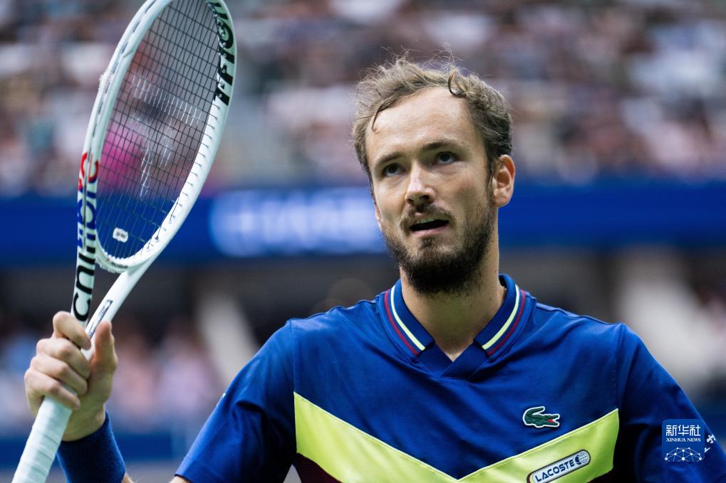 9月10日,梅德韦杰夫在比赛中。新华社记者 刘杰 摄
