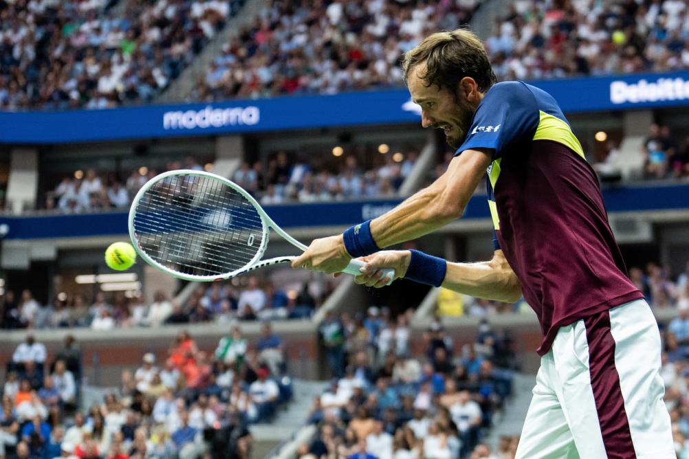 9月10日,梅德韦杰夫在比赛中回球。新华社记者刘杰摄