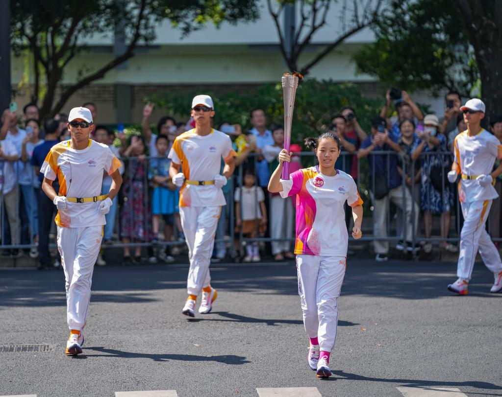 9月11日,火炬手赖子逸在火炬传递中。新华社记者 孙非 摄