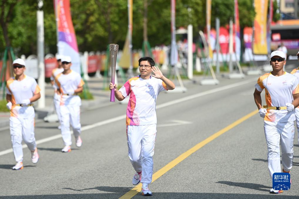 当日,杭州亚运会火炬在浙江省宁波传递。