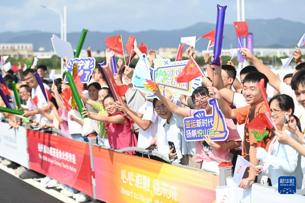 当日,杭州亚运会火炬在浙江省宁波传递。
