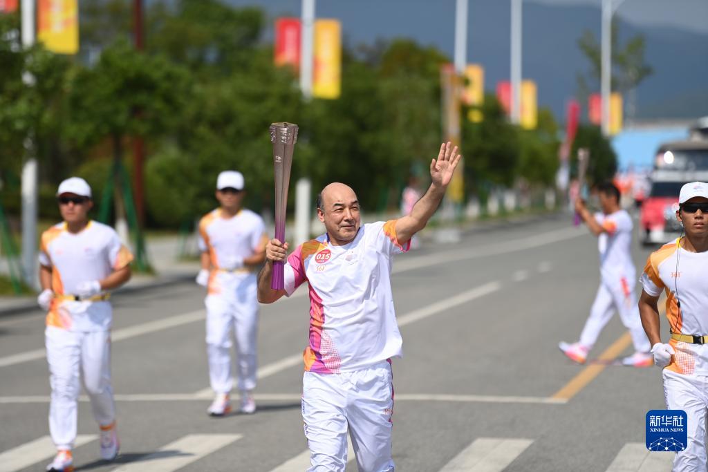 当日,杭州亚运会火炬在浙江省宁波传递。